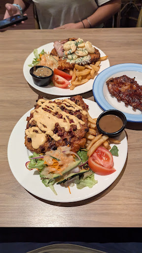 We ordered two parmi's, one hangover with ribs topper and one cream garlic prawns. Both were fantastic. Chicken was crumbed and cooked well, decently thick, crunchy crumbling and a big portion. The toppings were just as great with the hangover toppings being golden and crispy.
