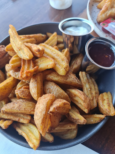 Been here a couple of times and the foods not bad nothing amazing but nice enough but this Sundays visit has been the worst yet. Booked well in advance and asked for veranda. Upon arrival found our table in a access way with an umbrella giving little shade, we weren’t the only ones squeezing around very little shade, but a table of 25 booked for an hour and a half past our booking time under a marquee remained empty.. I’m sure we could have been done in that time but others were in the same boat.. we settled in and got some drinks, meanwhile deciding on what to eat and watching newcomers come the view available and reserved tables and actively switching out the tables reservations names for better tables. While we perused our menu from the table in the access way and sun we had other patrons and their children bouncing basketballs in the access way as you know there is more space there to play.. instead of the designated play areas, Ignoring considerations of others.. Any ways we proceeded to try to order from the bar. As it was busy there was a sign that said order at joes if the queue is long, so we did first in our party gave the table number and on his way. I ordered and the special I was told had run out, ( I must point out here that the whole time we were there after ordering, that special remained on the board) So back to find out what my guest was to have instead, return to joes bar and order getting a buzzer, not table number, which I understand is the protocol of that area, but I will get back to that shortly. Sometime later after watching someone come round with a clicker checking head count?? Our first order finally arrived around 40 mins after ordering, nor bad considering the amount of people, we moved inside as it was cooler than our current location and went to enquire on my order now over an hour since order. Back to the buzzer.. I went over to the bar and asked where the order was, I could see through to the kitchen that was chaos tickets on he pass as far as you could see.. the lady took my buzzer and said she would chk on my order ( another 10 mins) and now I have no buzzer and the lady is nowhere to be found, another enquiry form staff member and I explain again another 15 mins to get some answers now eel over an hour and a half from order, bar stop taking food orders for a while in this time with notes on the bar. 3rd enquiry and my order is lost and I remind them the 3 dishes we ordered and another 10 min later 3 badly prepared nearly cold dishes arrive. Avoid this place at weekends throughout summer until they are better prepared, if u book in advanced go after 3.30 it was calming down or maybe people just got fed up of the poor service...