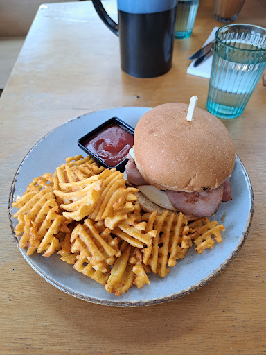 Read moreHad a long black before my lunch, then my wife and I each had the steak sandwich for lunch, we ordered the same thing due to the limited menu. We ordered at 1pm but we're told they were closing at two so we needed to be done by then. They were also out of chips and provided no other sides. Asked for water, and was directed to the water station-a tap in the wall. No ice or filter, and glasses were hazy, but seemed clean. The steak on our sandwiches was too tough to bite through, seemed like a cheap cut and over done. Pretty plainly present d too. Flavours were good though, as was my coffee. $42 for two sandwiches and a coffee. I think if you were going for a cake and coffee and a chat with a friend, this place would be great with its funky decor and plenty of seating and great coffee. But if you're looking for a meal, skip it. This place looks great but lacks substance in that regard and doesn't represent...