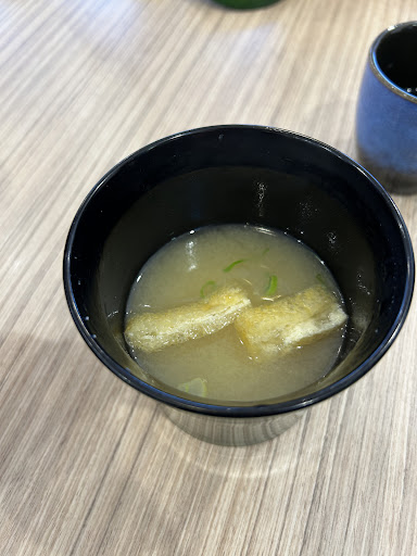 with rice they give miso soup and it is unironically the best i have ever drank in perth, its taste is so rich yet delicate, i know they put real effort into it. just sad i couldn’t have more + how the bowl is shaped like that for some reason, harder to drink with a spoon and making me finish it faster. fair though because i would have had all the soup too fast, and i appreciate the lids too