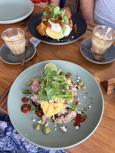 Location: Sev7en is located on the first floor up a covered outdoor staircase. Amazing views over Batemans Bay’s Clyde River and the Batemans Bay bridge with very little traffic on the street front outside for peaceful dining. Easy to access and locate in Batemans Bay town centre with flat walking options throughout the town. Layout and Function: There is a covered deck out the front with casual and comfortable coastal style seating options of high bar, dining table and relaxed couches around a coffee table. Inside has plenty of casual cafe tables plus back-to-wall bench seat options. Ordering is from the counter with table service for meal delivery. Food and Drinks: The food is fresh and delicious and very generous in portion size. It came quickly despite a 3/4 full house. We shared two mains between two adults and one 10yo child and were well fed. Coffee was superb with table water from self-serve water station. We have been to Se7en a few times and had great fresh juices previously- but these are no longer available unfortunately- juice choices are now pre-bottled from the fridge. We saw milkshakes delivered to other diners. The chilli scrambled eggs with crab is delicious. Sweet crab to the side of the scrambles on 2 pieces of toasted sourdough with chilli and avocado sauce dabs around the plate - well balanced and fresh with fried shallots for crunch and pickles and lime for tang. Romanesco eggs with delicious romanesco sauce bed beneath perfect poached eggs and long shaves of crispy sweet potato. There’s a counter cabinet with biscuits, friands and muffins with generous sized treats. We have previously enjoyed the delicious fresh sweet muffins with perfectly crispy rim. I would recommend Sev7en for great casual dining with efficient service and beautiful...