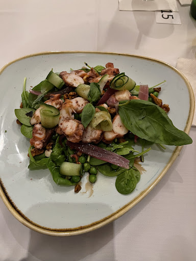 For entree, I had the octopus - Very nice cooked well itās not easy to perfect octopus and can be easily over cooked in this case it was cooked perfectly melted in mouth fresh taste the candy walnuts was nice with the basil the pickled red onion every Element put together on a fork is just mouth watering and very tasty.