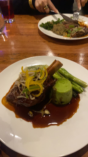 Unfortunately, from here on out it was a nightmare. We were brought out a "lamb roulade" with a red wine jus and tomato, cucumber, onion salad. The lamb was blitzed up into the texture of canned tuna and cooked in a cylindrical tube shape. It had zero discernible flavour and was feral. The red wine jus was saccharinely sweet and the whole dish felt wildly unbalanced. The swing from having light oysters to heavy lamb was also quite a bit of whiplash but that's more nitpicky.
