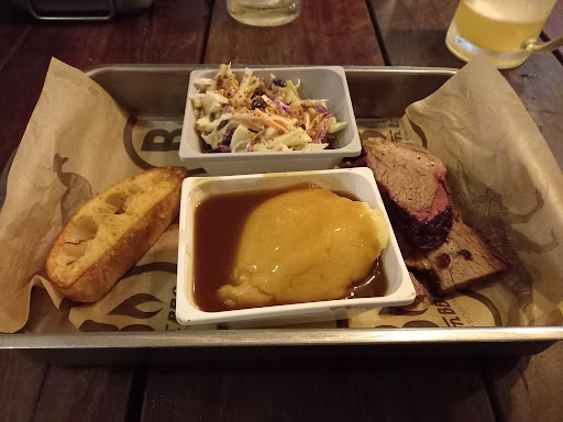 I am not going to be kind in this review however I will be honest. It took this place two hours to get food for an 18 month old. 7pm booking. We ate well after 9pm. No care, no consideration. 30 minutes to clear people from our table (who had finished and were just drinking). 15 minutes before we could order. Told it would be an hour. 30 minutes later than that. Food came out incredibly staggered: half the table had finished before the other half got theres. All for food that should be ready to go (aside from pizzas and the bruschetta-style entrees), its bbq afterall, its plating. Bar staff day dreaming or inattentive. No updates from wait staff about the wait. Two of us never saw parts of our order. We get that sponsors like Red Bull Racing or V8 drivers are premium guests and would jump queues and get fed as a priority...but to shuck us to two hours for almost-good bbq with a baby at the table... Ya coulda done the kid his meal. Us adults weren't happy, clearly, but we can grudge along with drinks and convo. A kid? Not so much. Be smarter, be kinder. Cmon, doing anything less and it's insulting. Also, the entry door doesn't close fully (last night was not ideal) and there was no soap in the men's toilet... all night. I did enjoy the slaw, having cranberries in it was good. My apologies for using swear words in reporting the issue of my grand nephew's hunger to staff, that was not directed at them however I should have had more decorum. For your knowledge, my grand nephew was the LAST to get...