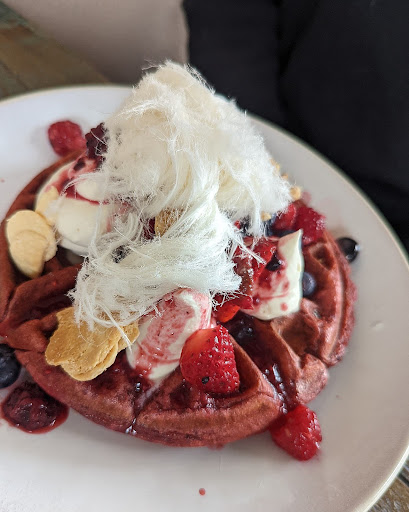 Upon entering the cafe we did as instructed and “waited to be seated”, but there wasn’t anyone around to seat us. I could see two casually dressed people behind the counter, and assumed they were staff.. but they were too busy fussing with something to attend to customers. Eventually the barista handed us menus and told us to sit anywhere we wanted.