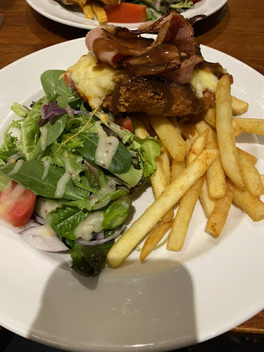 And the pub food? Rip-off city! Talk about overpriced for the frozen food. Big servings? Not really. Honey, I've seen bigger.. for less. You're better off driving 30 mins and going to ALDI. I am all for supporting local businesses but why do you chuck an extra $10 on for the same meals at dinner? Learn to actually manage head hours if labour is really that much of an issue. Don't eat here, go to the Pie shop...