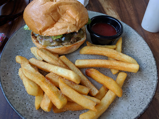 Old school cheeseburger $23 What a thicc boy burger this was! Chips were perfectly cooked salad was the right amount of crunchy, burger was not greasy at all! Saucey for sure but not at all overly greasy ! My husband downed the whole lot! Was a large portion too! Just too good to stop eating !