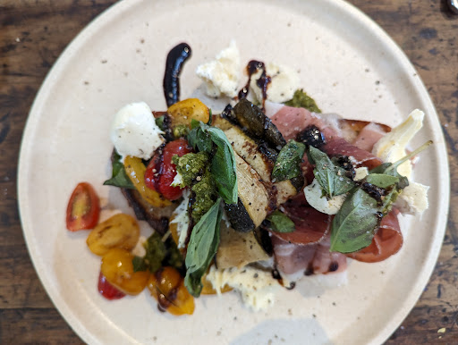 Beautiful eco-friendly focused concept homeware and clothes store on one side and deliciously tasteful cafe on the other. Big sexy wooden tables, none of which matched in excellent style. Tunes on point. Big sky lights in the roof and big windows everywhere make for a fantastic naturally lit feel which is often hard to achieve.