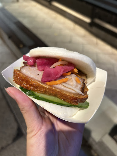 Read moregot a roast pork bao, i got to request without chili or coriander (L genetics i know) and they delivered pretty dang well. the pork skin is very crispy and the whole bao is full of flavor which i really enjoyed. only downside is a practical one, which is how soft and fragile the bun itself is- the bottom tears apart really easily so be careful when stuff falls out.