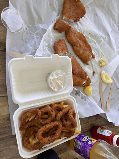 Chips, cold and flavourless… no salt. Calamari was excellent, bar breadcrumbs a little burnt. Both pieces of fish over cooked, rubbery, and breadcrumbs burnt. One piece of fish, half the filet was so thin the breadcrumbs were thicker than the fish.