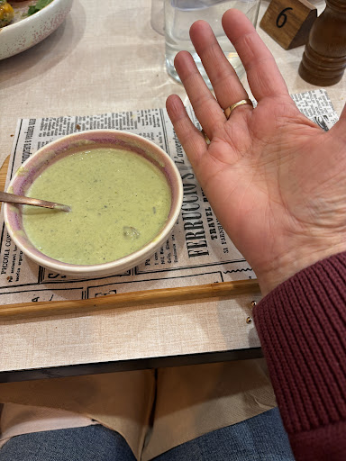 We arrived in Bowral hungry on a cold blustery winter day. Found this inviting looking cafe and were seated quickly at the beginning of the lunch period - cafe almost empty. Staff were welcoming and helpful, took our order promptly which was 2 coffees, corn fritters and soup of the day. However, the wait was almost half an hour, in which time three other tables (who arrived and ordered after us, larger groups) were served before us. When my soup arrived, it was delicious - garlicky cream of broccoli with 2 slabs of toasted sourdough- but the soup was the tiniest serve I have ever had. Served in a bowl smaller than an ice cream bowl, it cooled very quickly. I love soup on a cold day and usually ind it good value for lunch. Most cafes give a very generous serve - almost too much - but this microscopic serve made it not good value. At $16 the ingredients would have amounted to about $3 at best. My hubbyâs corn fritters were also smaller than the average serve. Yummy, but give...