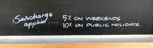 The only thing that didn't work for us was the 5% weekend surcharge that we didn't see written at the bottom of the menu.
