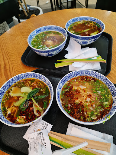 Our order: Lanzhou handmade beef noodle soup (兰州牛肉面) paired with the thinnest noodles (毛细), $12.80 Pickled cabbage beef noodle soup (酸菜牛肉面) paired with thick noodles (二细), $12.80 pork cabbage steamed dumplings (猪肉白菜燕饺), 4pc $4.80