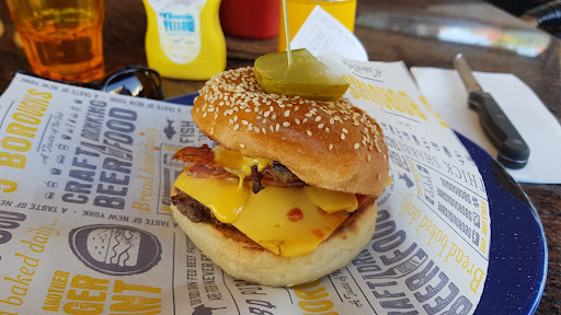 Ā Ā Ā Read moreI came here to meet with some family I hadn't seen in about 6 months and it probably isn't the best place to go if you'd like a genuine conversation that you can hear (not entirely the restaurant's fault). Given 5 Boroughs is right on the corner of a busy intersection, it's understandable that it would get a little noisy. Despite such, in the actual restaurant there's a major lack of ventilation, especially in the bathrooms. We came when it wasn't too busy yet food took a good while to be made, and when a family member of mine attempted to get a waitress's attention to order a wine it took her 3 loud attempts to do so. The food itself is a little expensive but it's not too bad. Be warned that a lot of the salad-based foods (or at least the chicken tacos and the blackened chicken salad) are a tad spicy and are LOADED with red onion. Their range in the bar is rather fun, but the drinks are pretty standard as far as taste goes. All in all, 5 Boroughs is a cute place to go to, but there are better...