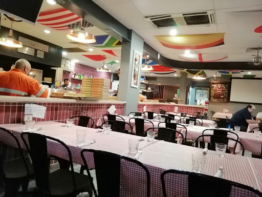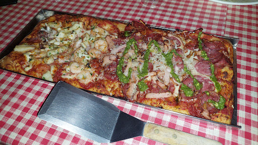 Here at Arrivederci you order the pizza by the metre or part thereof, because it's rectangular and not round. It's very cool seeing a large table group order and then receive several metres of pizza at once.