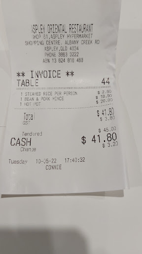 Read moreI had high hopes for my visit to Aspley Oriental Yum Cha on Sunday, June 9th, but I left the restaurant feeling thoroughly disappointed and frustrated. Our dining experience was marred by a severe lack of food coming past our table and a clear disparity in service that seemed to favor certain customers over others.