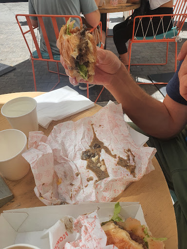What was supposed to be patty was a very hot mushroom soup constantly dropping from inside the crumbed. My boyfriend needed to put his hand inside the water glass and he got his skin blistered. The crumbed mushroom as veggie option and additional option was completely liquid in both burger. We needed to go to work and avoid any issue, but it made our day bad. We even had stomach pain after eating that, which was also quite salty. It was a huge disappointment!!!!! It happened on Saturday and it's still marked in my boyfriend's hand. Very sad how the recipe has been changed. I can't believe that anyone approved that as a burger to be sold. It's not a patty!!! It's not eatable! It may burn customers as it is made and for some reason we got sick for one days and half ! Also, please, put some hand sanitiser, tap water and napkins available for costumers! It's not comfortable call someone while we eat to have some more napkins or hand sanitiser or one more glass of water. Staff, nice service, nothing to complain about.