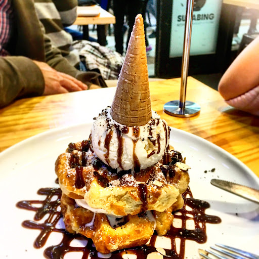We were very pleasantly surprised by the lovely selection of coffee, tea and desserts available. Cute ambience and and a lovely venue to chill out after a meal. We loved our Wafflesandwitch and would have loved to try more items from the range. We ordered the Green Sencha Tea and the Serenity tea which were born delicious. The staff pretty much leave you alone once the meals are served and we didn't feel rushed to leave even after we finished. It's a rare quality in a restaurant / cafe that I really appreciate when dining out. I think next time, we'll skip dinner and just head straight out to Surabing for dessert. It would be great if they had more comfortable seating but I can see nobody would ever leave if that...