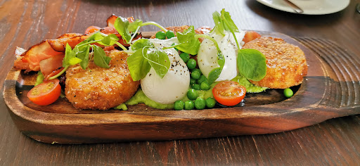 The potato hash cakes were equally disappointing, with big lumps of potato with little to no seasoning. The whites in my eggs were also not cooked so I left them to the side. The raw tomatoes were also under-ripe and sour. Threw the whole dish off. There was no cohesiveness to either dish and were generally underwhelming when comparing their descriptions in the menu.