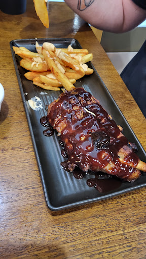 I made the mistake of going here on a Tuesday night, (07/03/23) after seeing a photo of a rack of ribs on their website. Much like McDonald's, the reality was nothing like the promised photos. A work friend and I went there in the evening and tried to order the $14.95 ribs special available during March... We were immediately told that it was only an online offer and we would have to order online, but could eat it there. We thought, "strange.... But okay, we'll order online." As we were fumbling with setting up an account to order from the website, the cashier advises us that the manger said she could take our order through the register, but would have to buy a drink. We were already planning on buying a drink, but there's nothing like a bit of cheap extortion tactics to bolster your appetite. Anyway, we also ordered chicken wings as well. The wings came first, which looked like they came from an emciated chicken that had an eating disorder. There was more bone than meat. In saying that, the flavour wasn't too bad, but it was very dry. Luckily I was coerced into buying a drink so the dryness was off-set with a beverage purchased under duress. 😋 After the 'succulent' chicken entree... We were greeted with the smallest rack of ribs that I have ever seen. They tasted quite nice but it was disappointing due to what was suggested in the photo on the website. Accompanying the tiny serve of ribs, was a layer of chips... Not a bowl of chips, or a pile of chips, it was a layer of chips. They lay side by side, (I think that I counted 9 in total) and reminded me of a miniature version of Tom Hanks raft on Castaway , except it was made of potato chips. The chip flavour was also pretty good, but the serving size was just a let down. All up, it cost $29.95. Anyway, if you're in the mood for overpaying for mediocre food and leaving hungry and with a lighter wallet, visit Burrito Bar...