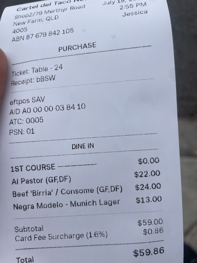 As for the food itself, the tacos were smaller than expected and did not justify the price. Additionally, we encountered a few issues: ⢠We had to ask for water for the table, which wasnât offered proactively. ⢠One of the tacos had an avocado sticker left on it. ⢠Drinks took much longer than anticipated. ⢠The food came out in an irregular order: we ordered two lots of guacamole and corn, but they arrived at different times.
