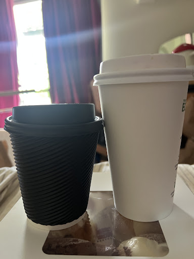 Coffee - everyone sizes differently and these are small. Pic below - white cup my usual medium - brown cup - devil’s medium. Disappointing value - and meant it was far sweeter than I intended. Next time I try a new spot I’ll remember to ask for it to be on the side for me to add. Coffee had a bizarre bitterness, completely disconnected from any other flavours, which were mostly hidden in a void where the flavour notes would usually be.