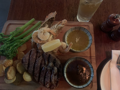 Read moreAcceptable quality for the price. My steak was cooked to medium rare perfectly but the fat on the steak wasn’t rendered fully. Was still pretty tasty. The bugs were ok. The lemony sauce it came with was delicious. As you can see in the photo, the food arrived in a cutting board...which was a bit cheap and off putting. It was a literal cutting board. Staff were a little weird, waitress took my main order and hurried off, I would have ordered an entree if she gave me a chance. She then asked me how my food was literally about 1-2 minutes after she brought the food, which was a bit odd since I didn’t have a chance to really try it. She did put the heater on for me which was nice. Overall good enough. Don’t know if I would go out of my way...