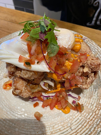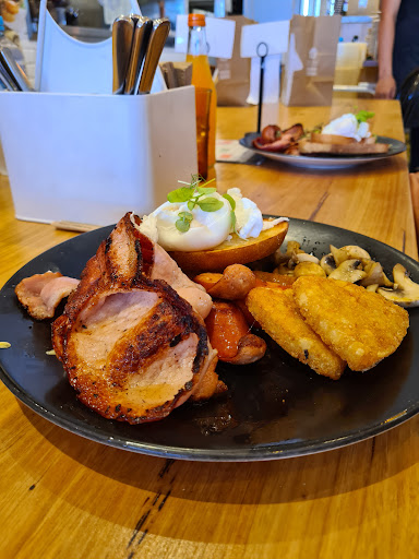 Had the big breakfast here this morning. The place can be quite crowded even first thing on a Sunday morning. I eventually found a seat outside at a very wobbly table. Service was cheerful and fast. The bacon, which was described on the menu as 'crispy', was, in fact, anything but. When I brought this to the attention of one of the servers, they cheerfully agreed that it was not satisfactory and offered to correct it. After a short wait, my meal was returned to me, and though the bacon was somewhat improved, it still was not truly crispy. I chose to ignore this and commenced eating. The tomato was of poor quality, pale and mostly flavourless, and had been grilled for only the briefest time (the skin was still clinging strongly and no attempt had been made to remove it). The mushrooms were not correctly browned and, as a result, were watery and lacking in flavour. The hash browns were of the small triangular frozen variety but were, at least, well cooked. The eggs were poached as requested and quite satisfactory (whites well set with yolks creamy and somewhat liquid). The cheese kransky was split and grilled on the split surfaces in the fashion I prefer but was extremely salty and contained a not inconsiderable amount of gristle. My iced chai contained very little chai with most of the cup being occupied by cream and ice-cream. The juice I ordered was of good quality and flavour, though lacking in volume due to more than two-thirds of the cup being ice cubes. All in all, it was a fairly ordinary experience and one in which the quality and quantity received fell far short of the price paid ($40+). I could not recommend this place, except perhaps, to those desperately seeking an early morning meal when nowhere else can be...