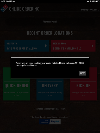 Read moreWell. I have been a repeat customer here for 2 years now, and the attitude from staff tonight was disgusting. I have worked in hospitality management, and I can understand when a team is having an off night, but I was waiting 40min for two pizzas, had three different staff ask me the name for my order, and only when the last young gentleman asked what the order actually was did a young lady declare from the back "it's there, I called it out" (of which, if she indeed did, I can assure you she did NOT call it when I was in the store, or she had not said my name, hence WHY i didn't take the order) in a tone that was absolutely inappropriate. The young man then practically shoved the pizzas at me, and chucked the garlic bread on top. It took everything not to lose my cool, because I knew there would be no point in discussing my feedback to such sarcastic, unprofessional staff. Get it together guys - if you don't feel up to working that night, then don't. It makes for a poor working environment, and the store ambience was disgraceful. And upon arriving home - they didn't even make the right pizzas!! What a sorry excuse for a business. The Dominos franchise needs to remove any current managers and have a serious chat with the owner because this is NOT the way to run a business. Staff reflect their superiors. Easy to say you have just lost a customer, and I will not be recommending anyone...