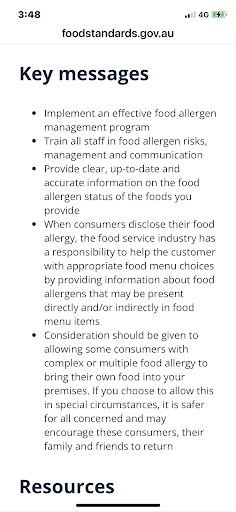 UPDATE I called the store directly as suggested by Domino’s response I spoke to the manager, Lachlan. I asked what he will do to prevent this in the future because clearly something is wrong for it to have happened 4 times in a row, after only a handful of times in 10 years. He apologised and gave me the usual no guarantee spiel blah. That’s it. I asked if all employees are trained in food allergy practices in which he replied that only managers are. Seriously Dominos? Not good enough, and illegal. I have attached a screenshot of the Australian government food standards website fyi 😞