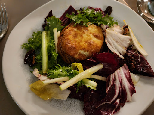 Food: For Entree we had the: Seared Scallops - sauce was nice Roasted mushrooms Goat souffle - lacked a sauce or something to bring it together.
