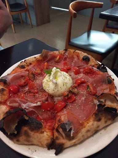 Food Four of us dined on a Thursday night in Apr. We ordered three drinks, three pizzas, (a Margherita, a Salamino and a Vegetariana) and one pasta dish, the fusilli alla Norma. No complaints about the food. It was all delicious, beautifully prepared with love, care and attention to detail, and presented to the table on stylish, modern crockery. The pizzas were a decent size, and filled with lashings of tasty, fresh ingredients. Mine was the Salamoni which had tomato, spicy salami and mozzarella. Everyone enjoyed their meals.