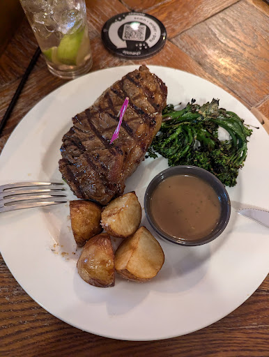 Went here as part of a group of 8 for lunch, I ordered the lunch special steak and paid $4 extra to replace the chips and salad with roast potato and broccolini, normally this is no additional cost to swap veggies/salad at other pubs. If that wasn't bad enough, when it came out, there was 1 tiny potato cut into 1/4 and 2 broccolini heads. Compared to the others who got the chips and salad, it was so empty. Giving credit where credit was due, the steak was cooked very nicely. However someone's steak came out 30 mins after the 7 other meals, and only when asked where it was (also adding the employee was very dismissive and didn't even respond to me when I asked where it was, just wrote some notes down and walked off). Then when the steak came out 5 mins later it was so undercooked it was almost blue (meant to be mid-rare). Everything seemed to just be expensive as well, I would not expect to pay $35 for a lunch deal steak with a Lemon Lime Bitters anywhere. Overall a below average experience. Pretty safe to say that we will not...