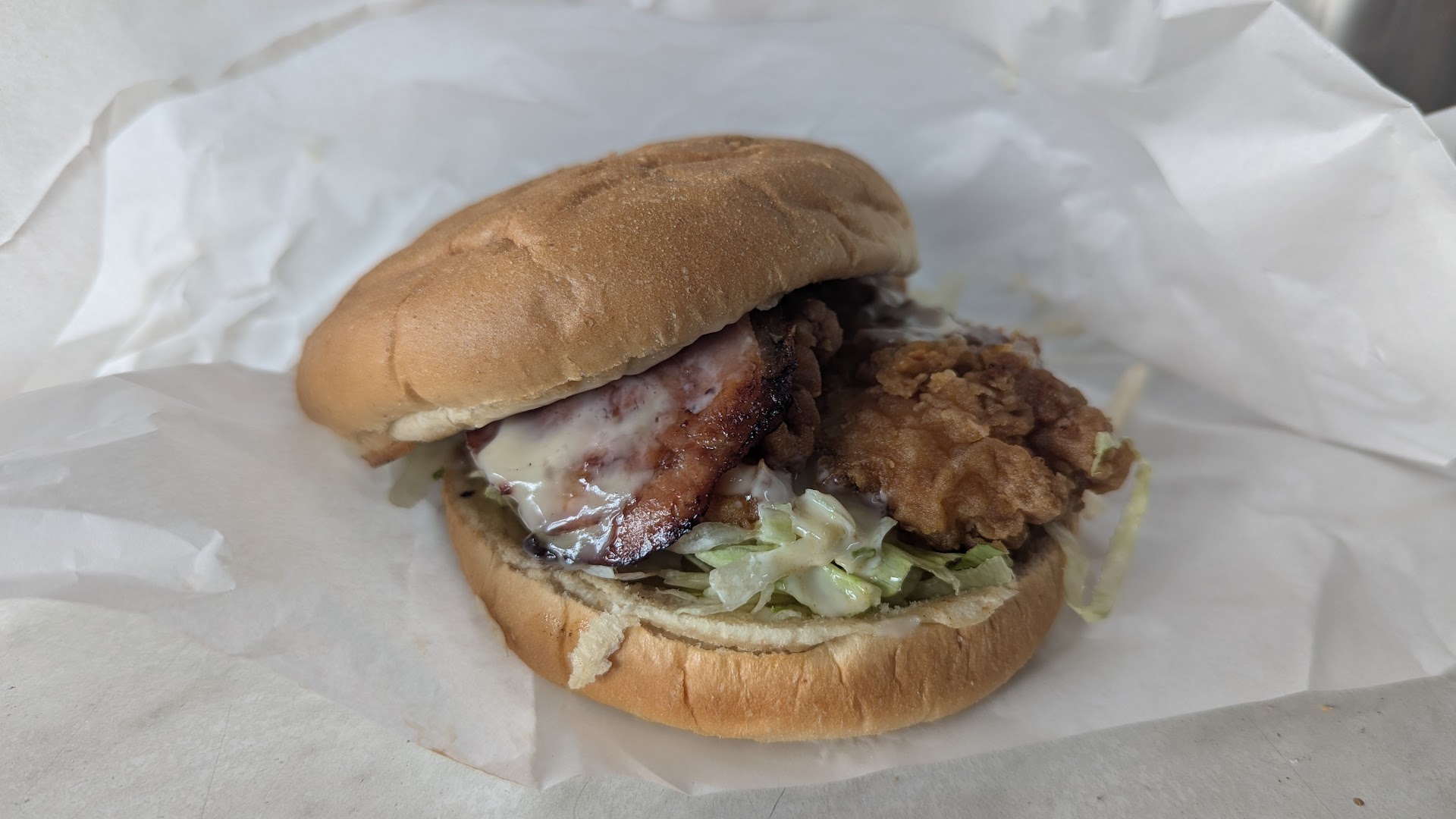 So good I gave their chicken burger a go, decent too, although I would recommend they keep the parts separate in the warmer proper to service....