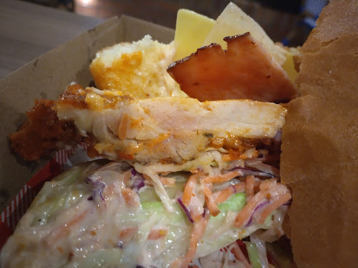 Cons: The aioli had a consistency of butter and a very strange flavour. The parmies were dry and needed more than a scraping of Napoli. The biggest let down was the chicken burger. It looked incredible. Picture perfect! After cutting it in half I found it wasn't cooked all the way through. It was pink inside. I took it back, let the staff member know and he took it back to the kitchen.