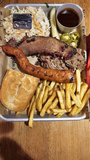 Loved our dinner at Frankie's Smokehouse Woolloongabba tonight. This is the best BBQ I've had. We shared between two of us the Platter for One, 6 wings (white alabama and golden Carolina), brisket pit beans, zesty corn and onion rings. Definitely more than enough for two people. They offer take home boxes for leftovers. The drinks are really reasonably priced and you get a 5% discount on drinks when you sign up for the app via a QR code at the table. The hotlink was bursting with flavour with a little cheese and a little spice and was really well cooked. The brisket was melt in your mouth and had a great flavour and the pulled pork was really what made this the best BBQ I've had. I find pulled pork normally lacks pork flavour and this one doesn't. My husband found it a little salty but I like my food well seasoned so I was happy. The coleslaw was nice and creamy and fresh. I loved the bread roll. It was soft, airy and pillowy inside with a great crunchy crust. The seasoning on the chips has a great unique flavour and pickle had a great touch a sweetness. The bbq sauce that is served on the side was super tasty too. The onion rings were beyond good. So crunchy and the onion inside is caramelized and it's served with a delicious ranch. I'm not a beans fan but these were great. It's a combo of bean types and has a little kick at the back of your palate with a nice smokey flavour and you can see little bits of brisket mixed in. The corn was nice and sweet with a little bbq char on the edges. The wings were perfectly cooked, nice and juicy but crispy skinned. The sauces we had with the wings were both so good. I loved the look of the restaurant. It has a great fresh relaxed feel with some unique lighting and great wall graphics. It's a great mix of brightness mixed in with brick and a slight industrial look. We sat inside which was a nice temperature. They also have a couple of outdoor eating areas including an area next to their massive smoker. It really is impressive. We were there during daylight but it looks like it would be beautiful lit up at night. The playlist in the restaurant was awesome! The staff were amazing. The waitress we had was very explanatory and friendly but the guys at the register were obvious BBQ/food enthusiasts and had some awesome recommendations. Definitely a must visit if you're in Brisbane. Thanks for a...