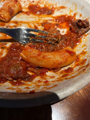 I had the beef and pork ragu, which had some ok flavour but was a challenge to eat given the size of the rigatoni (see photo). No normal person is trying to fit a piece of this in their mouth along with the sauce containing large chunks of meat…this means using a knife and fork for a pasta dish which is less than ideal.
