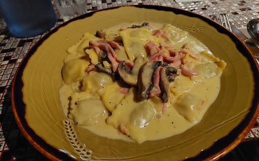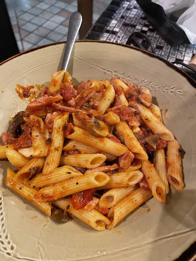 The next red flag was the waitress' inability to recommend menu items, with a comment that the only difference between the carbonara and the Alfredo being mushrooms (which don't belong in Alfredo but I digress). We had the calamari, which my husband said was the worst he'd eaten in 20 years. We were starving, we ate it, despite it being overcooked, under seasoned, and served with a decidedly not Italian mayo-based concoction.