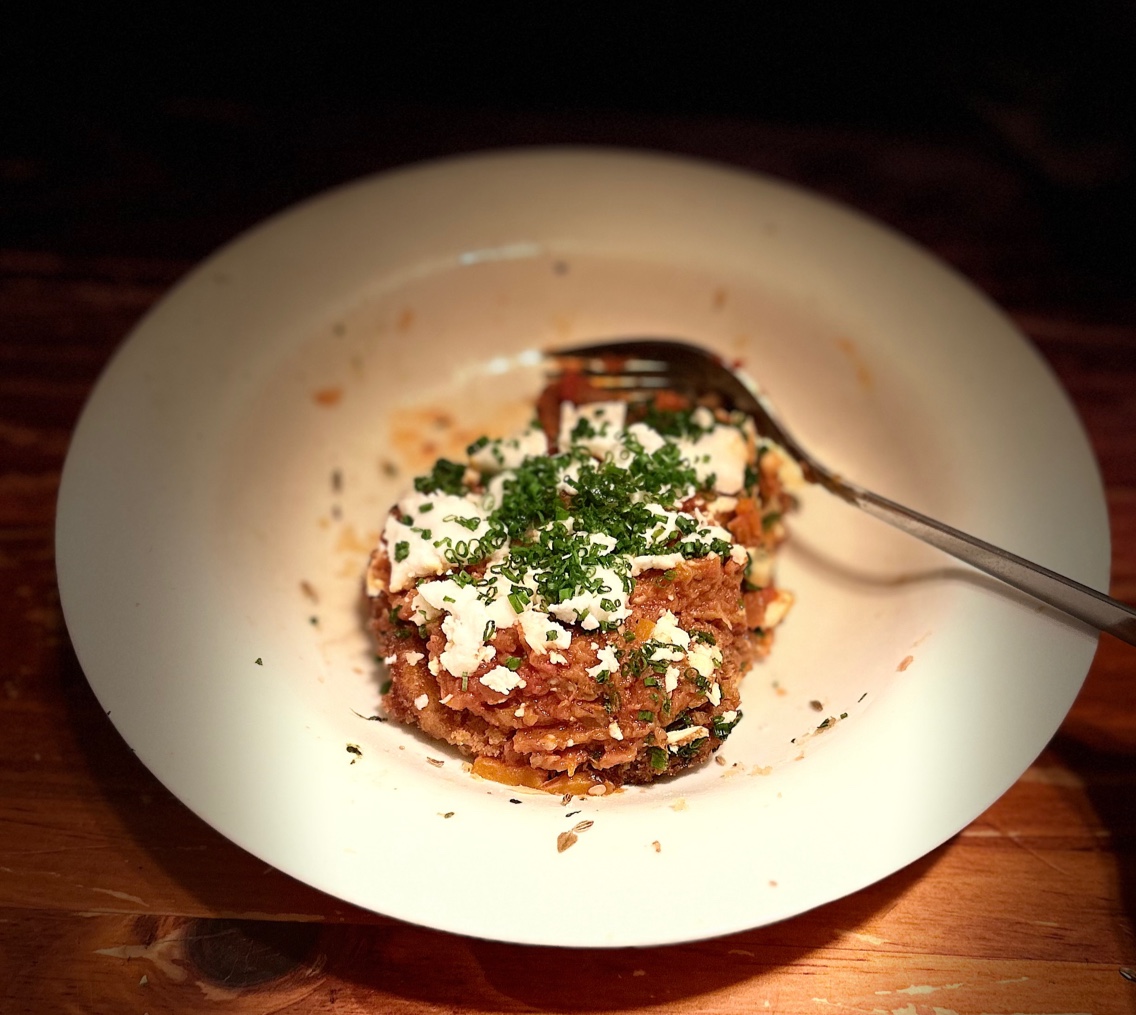 Then the egg plant moussaka and the fried veggies were both so delicious. I aspire to prepare vegan food that amazing. I feel like eating the fried veggies improved my quality of life.