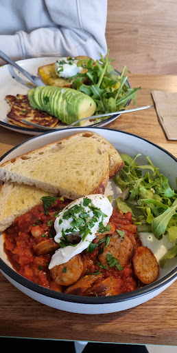 Read moreI remember this place having a big new opening at some point, and I came in and it was really good, but the last 3 times I've eaten in since the food has just been...kinda gross? Strange flavours, cakes that are doughy and kinda undercooked. My flat white was lukewarm/cold on receiving twice. And the customer service the last time I went in, given all of these other issues, was pretty poor. A man took my order and he was very surly, I tried to make small talk and asked about the place but he just kinda took my order and told me it would be ready soon. It's a good thing I got take out, I felt burdensome to them by taking up space inside during the bad weather, a girl with dark hair handed me my coffee and just kinda glared at me. I guess it could have been a bad day, but after my own bad day I was hoping for comfort. The location is also awkward, and the seating isn't very comfortable. I miss the pizza days, maybe I'll check it out if it comes back on...
