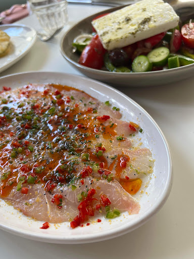 Read moreThe high prices here allow them to choose to use excellent quality produce, have a good drinks list, numerous staff, a professionally run kitchen, and lovely decor (at least in the main part of the restaurant). And nice of them to let us in , dressed like tourists, with no booking , on a busy night. We had entrees and mains and a drink each and that ran to just over $200 for the two of us. The Barramundi was a good serving size, perfectly cooked, at just the right level of hint-of-char flavour I love. The cooked red pepper with it, a revelation.The simple Greek salad, just excellent. But if you want to play at this price point, everything, every thing, needs to be good. The Moreton Bay bug spaghetti was a huge disappointment. Plenty of bug pieces, but an absence of any flavour. The bug itself tasted 'wet', and there was no real base flavour in the pasta. Like the fish, served on a share dish, which was great, but it meant that it lost heat into one plate, then into your plate, making it too cold. The taramasalata also lacked flavour, and to add injury to insult, did not come with pita bread. Who serves dip without complimentary bread ? Do you expect me to eat it with a spoon ? We of course ordered pita to go with it, but really... Anchovies very nice, in a quality oil, but tbh not as good as those we get from our gourmet deli. Glass of wine tasted like it was from yesterdays bottle but might just have been the style. We ate out back and minor point, but compared to the rest of the restaurant, the decor was like eating in a nice shopping centre cafe. It detracted from the 'lux' experience. Staff, service, timing all excellent, and we really enjoyed the dishes we, uh, enjoyed. But in the finish, we both summed up our experience as feeling underwhelmed. 4 stars rather than the 5 the pricing would indicate. Not likely to go back, but if we did it would be...