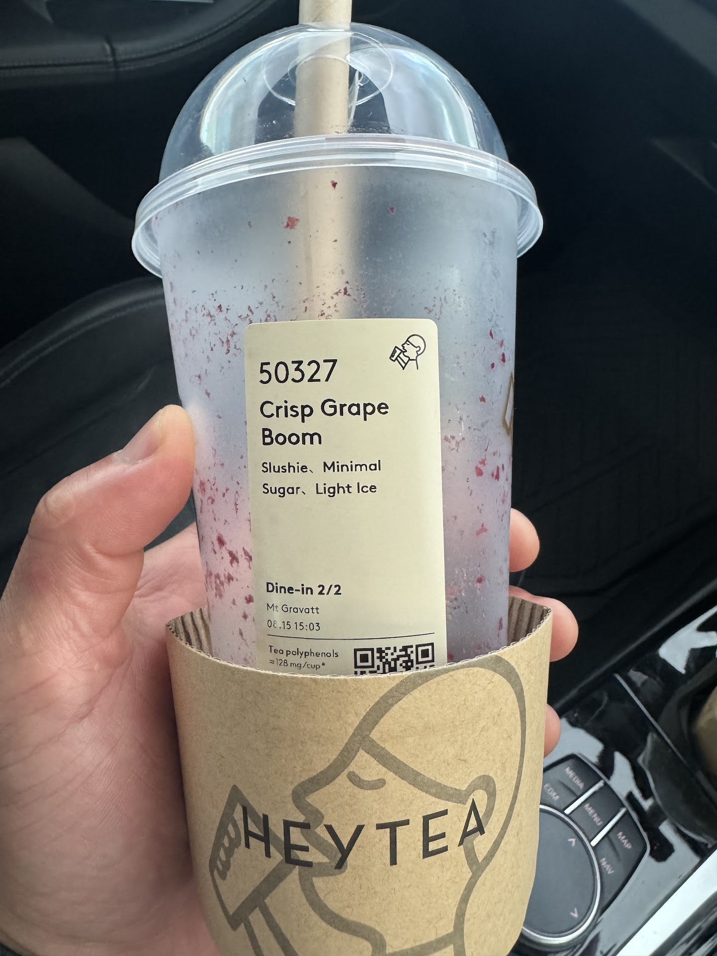 Read moreMy first experience when the shop first opened was that the drinks were not as good as I imagined (first time I tried mango grapefruit, it was too sweet for my taste) and grapeboom (also quite sweet for my taste) but my mom really liked it I tried a few more times and really got addicted to the tea here đ if you like fragrant tea, not sweet then I highly recommend jasmine latte, I can confirm this is one of the best jasmine latte shops in Brisbane. Also you can try the supreme matcha latte, I'm not a matcha fan, but this drink really convinced me to come back You can see I'm a fan of heytea by the number of orders đ luckily the shop is not on uber yet, otherwise I think I would drink it every day a small tip for those who don't have to wait long is to order via the app...