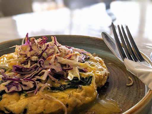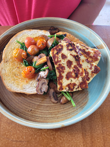 Service 4/5 Food 3/5 a spacious cafe outside the middle park village shopping centre was quite busy when we went, had friendly staff which was lovely heard good things about this place but was quite disappointed, all three meals and drinks totalled to around $73 which for me personally i think is quite pricey for a cafe but if you consider the quality of the food here, is not worth it ordered eggs on toast poached with added mushrooms and halloumi cheese, fish and chips, angus steak sandwich, hot chocolate, short latte and a ice coffee drinks were pretty okay, nothing much to comment on~ the food on the other hand, sandwich was incredibly dry, no sauce whatsoever within the sandwich, meat was incredibly dry and tough, a difficult meal to eat overall fish and chips, the fryer oil hasn’t been changed in a while as you can see from the dark burnt batter on the fish, luckily the fish behind all the burnt batter was actually alright and quite fresh eggs on toast, the add ons totalled to $9 but came in such tiny portions, for two tiny slices of cheese and 7 pieces of mushroom the bread and eggs were alright, wish i would have stuck with just that then add more on overall, i don’t know if i would recommend this cafe, for drinks it would be alright, but meals...