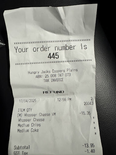 Since we had wasted 30mins each filling out feedback forms where we gave hungry jacks the best ratings possible (which I now wish I could change to the worst) I asked if we could at least get a freesmall drink or chips, especially since the cashier had told us each receipt entitled us to a free whopper, small chips and small drink but the manager wouldn't even give us a friggin small chips or drink. It was at this point I realised a huge line had built up behind us and was nice enough to still purchase 2 BBQ cheeseburgers. Afterwards my partner was like "you are better than me suger, I'd have left and not gotten anything cause of that bs".