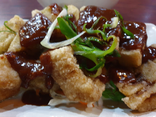 Absolutely disappointing were the miso-glazed eggplant: unfortunately just deep-fried eggplant sticks doused with thick miso paste. Visually, it was more reminiscent of stale fries with rancid ketchup. The rice was also just tasteless and overcooked (this was definitely not Japanese sushi rice). The salmon skewers were tiny and overpriced, and all the plates were decorated with unappetising green salad leaves and too much mayonnaise. The rest (Agedashi Tofu, Squid Karaage and Takoyaki) tasted average at best and were probably ready-made products.