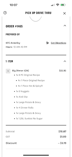 Two weeks ago I ordered online, built my own bucket, added sides plus a kids meal. When we got home we realised there were multiple items missing from every area of majority of our meals. I called back and spoke to a lady who made a vocal contract to send an email replacing the whole order as parts were missing from every meal/box ordered. When I went on to the email to reorder it showed only part was going to be replaced so I called the Annerley store and spoke to Nick (I feel for anyone who has to deal with him as he tried to tell me I didn't speak to a woman then later went on to say no females were working that night... Only I picked my food up, there were infact females working. He also couldn't tell me what staff were working that night so we could organise this problem. Oh all before saying no females were working when I spoke to one and got served by one... Awkward for a manager to not know these simple things or stand beside his staffs word). All I can say is don't leave without checking every part of your meal or the store won't take accountability for their words or actions.