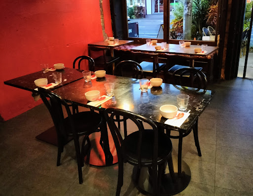 ATMOSPHERE King Tea has a cool, casual, and relaxed ambience with low mood lighting and distressed brick walls in a red colour scheme. The wooden furniture, floors, Chinese-style shutters, and lanterns complete the oriental aesthetic. A bar counter with chairs at the front corner seems to cater to those waiting for their table.