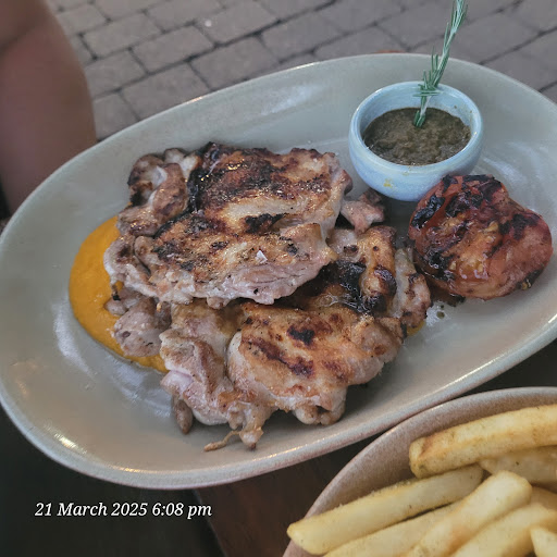 Reality: chicken had no grill marks, lacked any good flavour and was served with the same underwhelming sides as the steak.