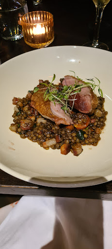 Read moreThis place has the look of a fancy restaurant but at the moment, I feel like it's an illusion. Context...I was celebrating a milestone birthday on this occasion. I am not sure what's going on, but there are issues. Service is hit and miss. One of our waiters was great. He was very attentive and on the ball. Another one must have been having a bad night because a slight attitude adjustment would've made our night a little more pleasant. She came to our table twice with orders from other guests and when we said it wasn't ours, she became annoyed. But why do we cop the brunt of her frustrations? We ordered the duck (2), the lamb loin and rib eye steak ( ordered to come out as medium rare). Everything came out over cooked. The steak was especially disappointing considering it was $40. And duck when it's over cooked is not very nice. The size of the breast was disappointing and again considering the price, maybe this dish needs to be removed? Dessert was creme brullee. The toffee had the perfect crack, however the creme might have needed a little more setting time. One thing that I noticed that didn't seem to make sense is all of the staff wearing...whatever. For a place that has tablecloths and cloth napkins and beautifully set tables, why not have a classic uniform of black pants and white shirts under...