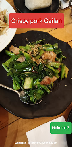 Read moreWe've visited this place for dinner on a Saturday evening. We've ordered three dishes and four sricky rice. This is with the intention to share. The food that we've ordered were: Crispy pork Gailan. Delicious prices of pork cooked with gailan. Savoury and tasty. You have to eat this quickly as the sauce will reduce the crispiness of the pork. Perfectly seasoned and freshly cooked Gailan. Chu chee soft shell crad. The softshell crabs were cooked with curry. Like the crispy pork, you better be quick if you want to enjoy the crispiness of the softshell crabs. However, the curry sauce complimented the crabs well. It was creamy and went well with the sticky rice. SomTum Chicken (chicken with papaya salad). We've opted to have the option with the anchovies sauce on our papaya salad. We've asked for spice level 1 (gentle spice). Nice fresh papaya. The anchovy sauce blended well the ingredients. The chicken was tender and went well with the salad. The other option for the papaya salad that you can ask is the one that taste sweet and salty (as per the staff). Overall the experience was good. Food tasted good and good services from the staff. The place was busy and a bit noisy. But the noise didn't bother us (just put it there so you know). It gave a sense of dining in an asian...